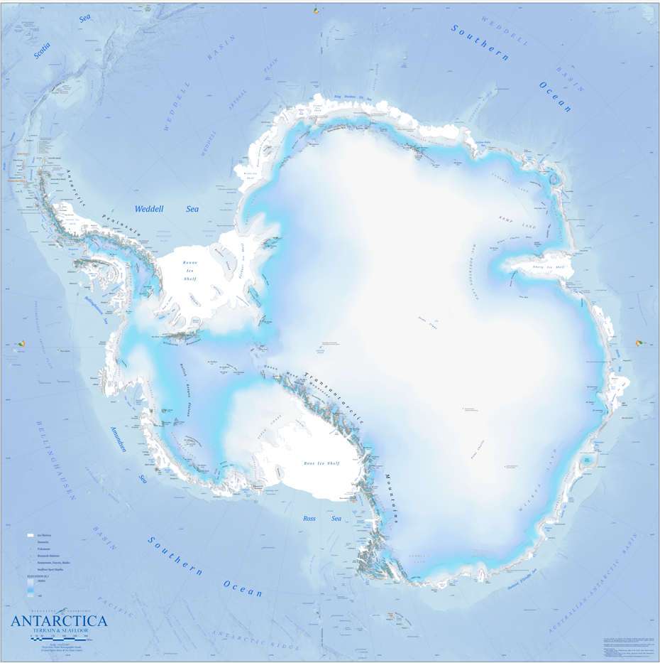After producing polished first drafts of seven continental Terrain & Seafloor maps, I aggregated the imagery, data, labeling, and research that went into the production of all seven continental maps into a single World Terrain & Seafloor map, which I now sell as my flagship product. The difficult and highly detailed terrain maps of the United States and the U.S. State of Florida, both rich in conservation and recreational elements, were the most recently-completed products.